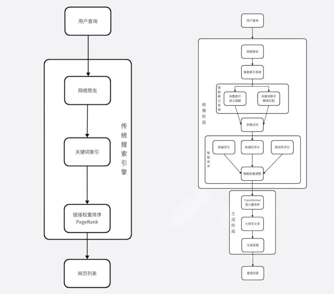 掌握GEO,先懂生成式AI搜索引擎机制:它融合信息检索与内容生成——既像传统搜索抓取网络资料,又靠大语言模型生成自然语言回答。内容想进入AI答案,需过两关:被检索到,再被生成模型采用。